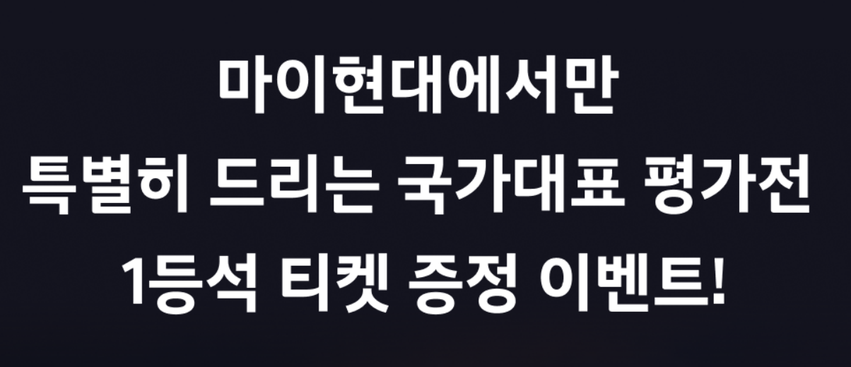 마이현대에서 축구 국가대표 평가전 '1등석 초대권 티켓 증정 이벤트'를 가집니다. 10/13(금) 대한민국 대 튀니지 10/17(화) 대한민국 대 베트남 1등석 초대권 티켓을 쏜다고 하니 2023-09-27 ~ 2023-10-08 이기간 안에만 이벤트에 참여해야 하니 마이현대 회원가입하시고 축구평가전 이벤트에 참여하세요.