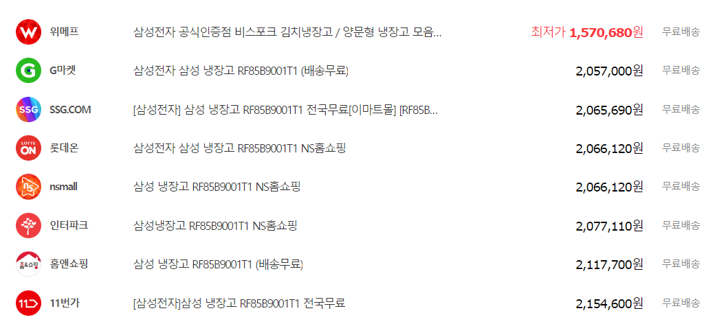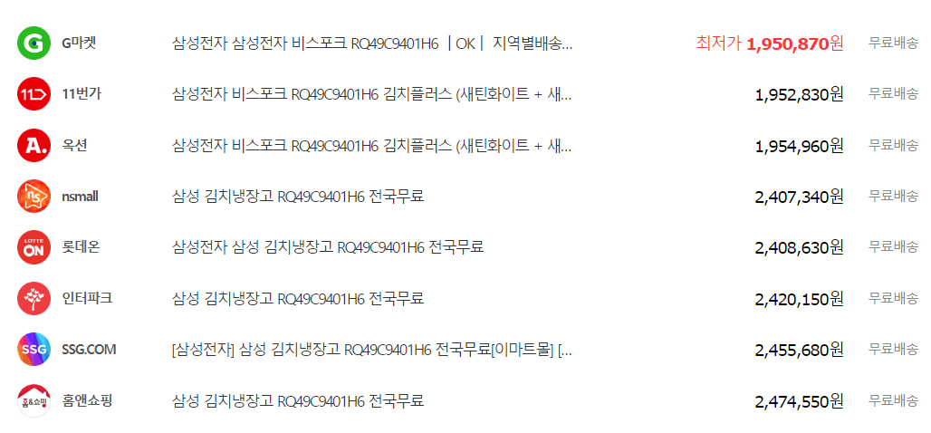 ※ 대형 쇼핑몰에서 별점 4.5 이상 받은 삼성 비스포크 김치 냉장고 TOP 5 최저가 판매처를 알아봤습니다.