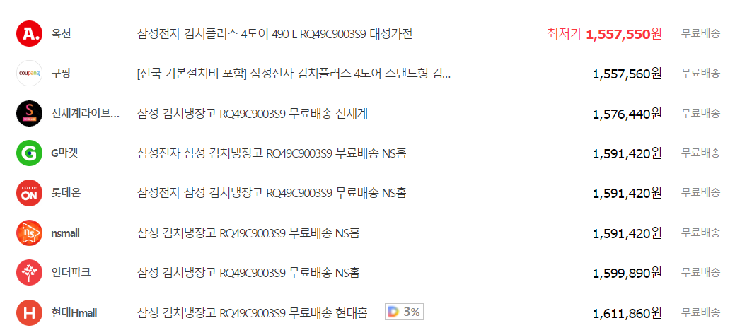 김장철이 다가오면서 김치냉장고를 검색하는 사람들이 많아졌습니다. 대형 쇼핑몰에서 별점 4.5 이상 받은 삼성 비스포크 김치 냉장고 TOP 5 최저가 판매처를 아래에다 정리하였으니 똑같은 김치냉장고를 한푼이라도 저렴한 곳에서 구매하시기 바랍니다.
