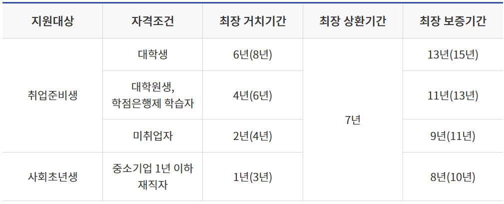 ※ 괄호 안은 군입대예정자(군필자, 면제자, 여성 제외)에 대한 추가 거치기간(2년) 부여 시 거치기간