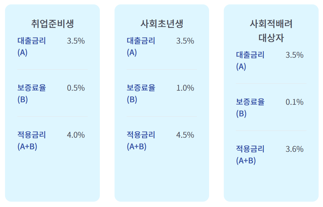 * 보증약정 이후 햇살론유스 협약은행(기업·신한·전북은행) 중 우대서비스 등을 비교하여 원하는 은행에 대출신청 가능