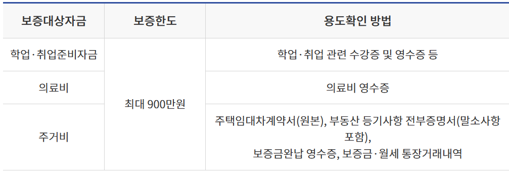 - - 자금용도 확인서류 상 이용자 및 지출자가 보증신청인 본인인 경우에만 인정(가족 명의의 임대차계약, 가족 의료비 등은 모두 불인정)