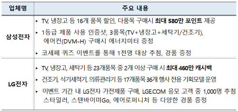 - 가전, 의류관리기 등 인기품목 할인 및 다품목 구매시 최대580만 포인트