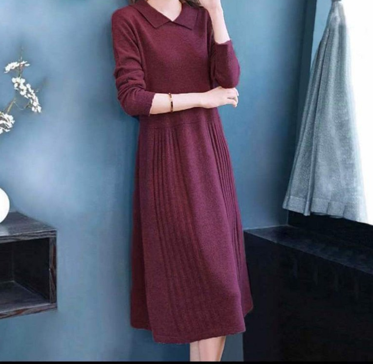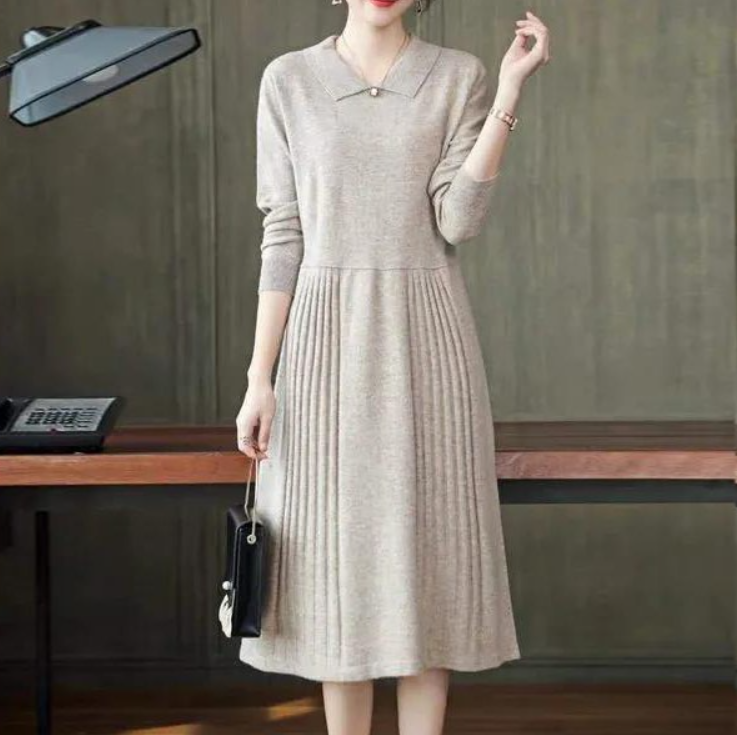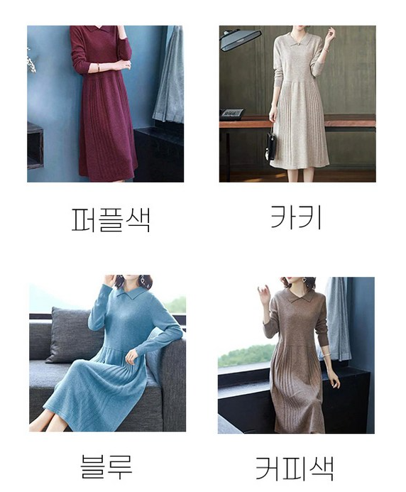 1. 메인워크 중년여성 빅사이즈 카라넥 니트 원피스 긴팔 가을 겨울 통통한여자 루즈핏 슬림핏 미디 심플 스판 엄마하객룩 스커트 - 원피스