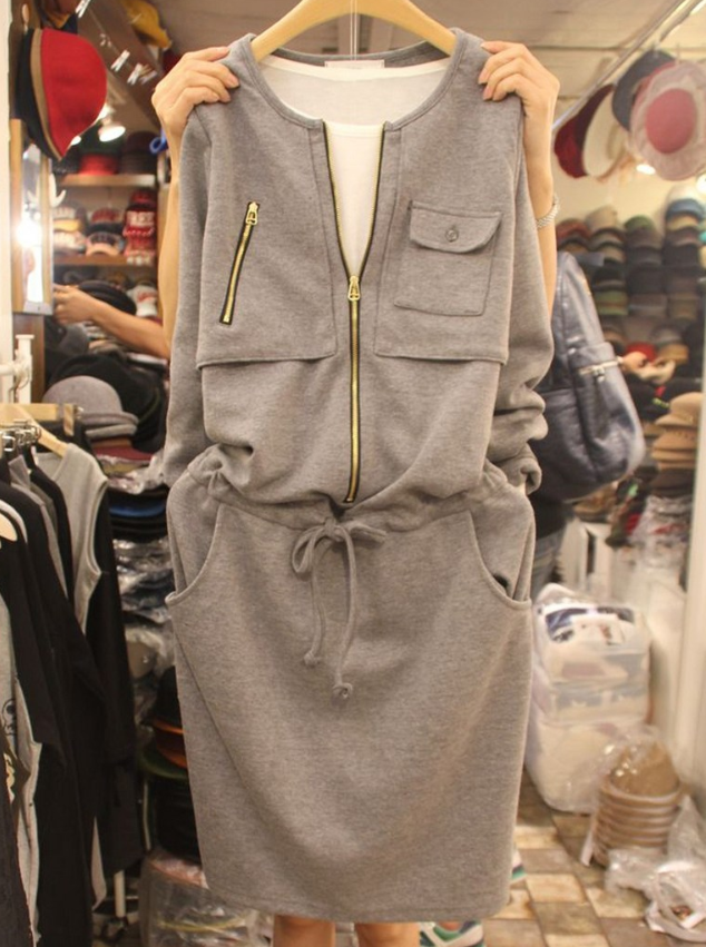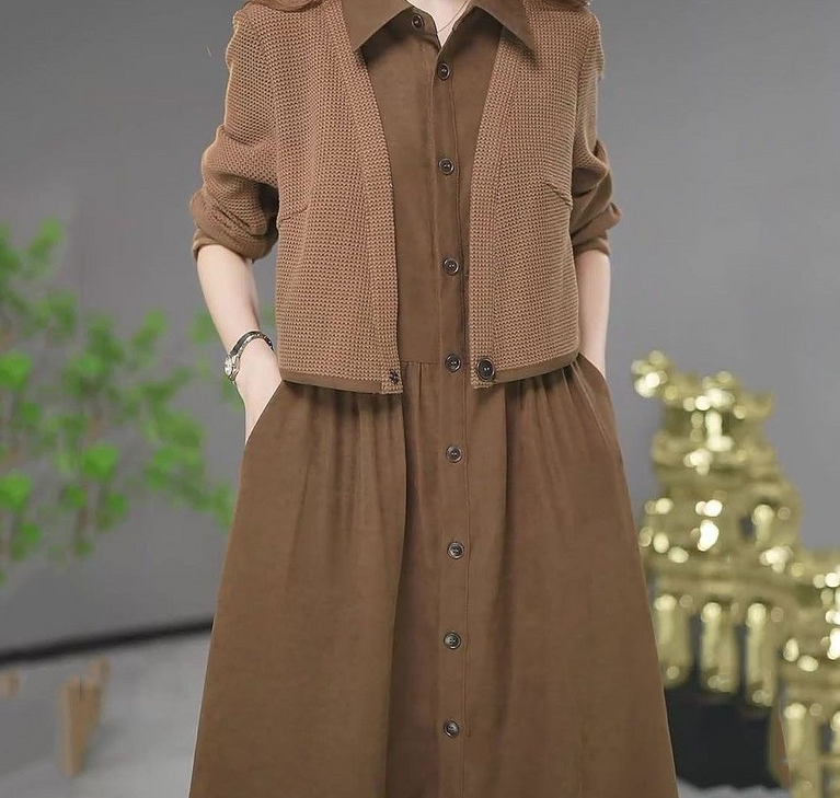 5. 간절기 루즈핏 카라원피스 니트패치 레이어드 플레어 롱원피스 중년여성의류 40대50대 - 원피스
