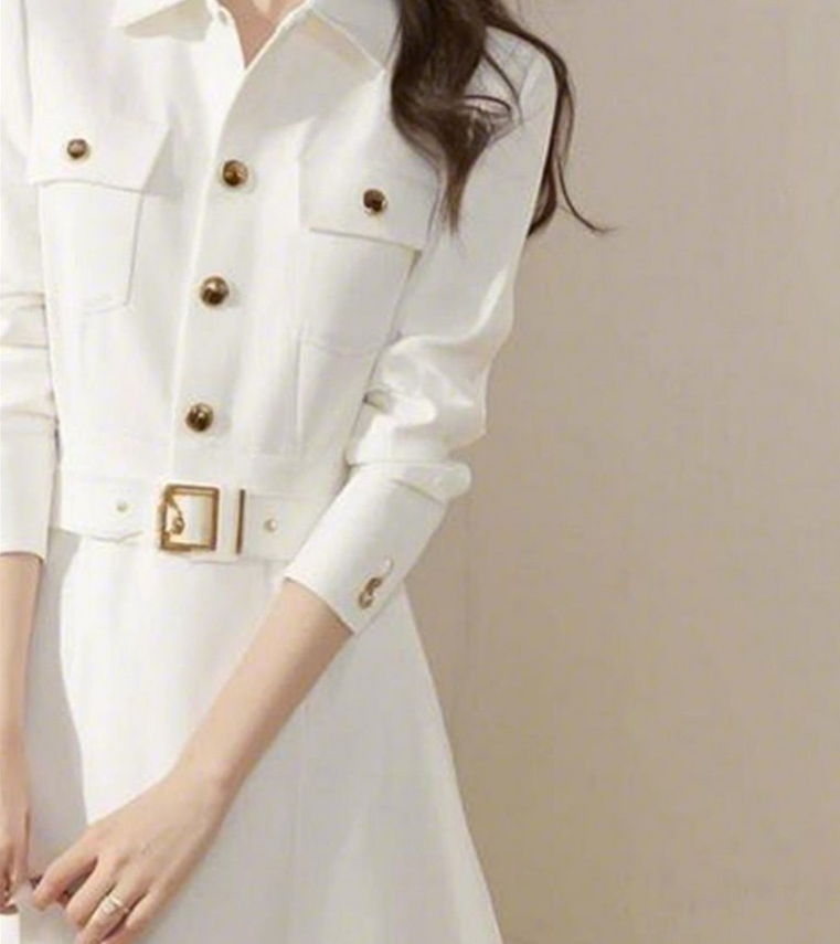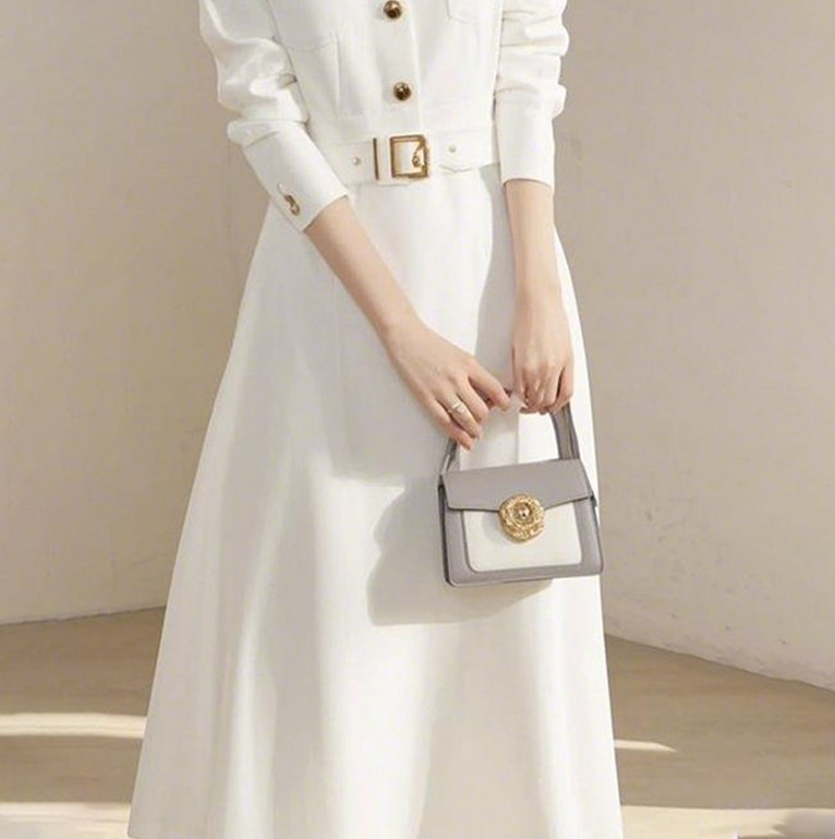 4. AOKADA 여성 봄 가을 라운드넥 허리 벨트 A라인 플레어 원피스 결혼식 하객룩 - 원피스